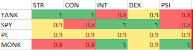 Another is that not all classes are equally proificient with all skills. Depending on your class, you may underperform in some areas when compared to a chararcter of a different class, even if your base subskills are the same. There is a multiploer which is applies to each mainskill for each class, which is as follows: